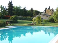 Photographers be prepared: the views are breathtaking, Olive groves and vineyards go on as far as the eye can see, covering rolling hills dotted with quaint little farms and villages. This private home is situated on a large farming estate, during the summer the owner rents rooms in her separate villa. This pretty villa however is tranquil and well separated from the main house by trees, a patio and the swimming pool. The interior is simple and comfortable, the swimming pool is shared with the guests of the villa. There are stables on the grounds and horse riding is also available.